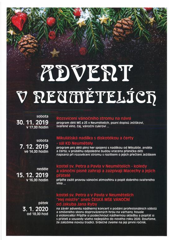 kulturní výbor obce Neumětely zve všechny na adventní svátky a akce s nimi spojenými