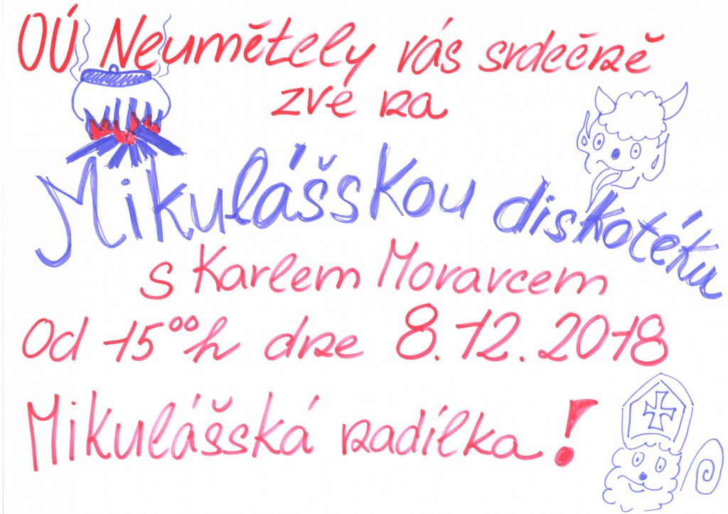 Zveme všechny, děti i dospěláky, na Mikulášskou diskotéku.