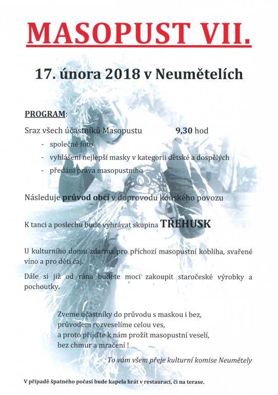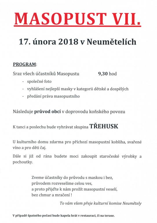 zveme všechny na VII. ročník masopustního veselí v naší obci