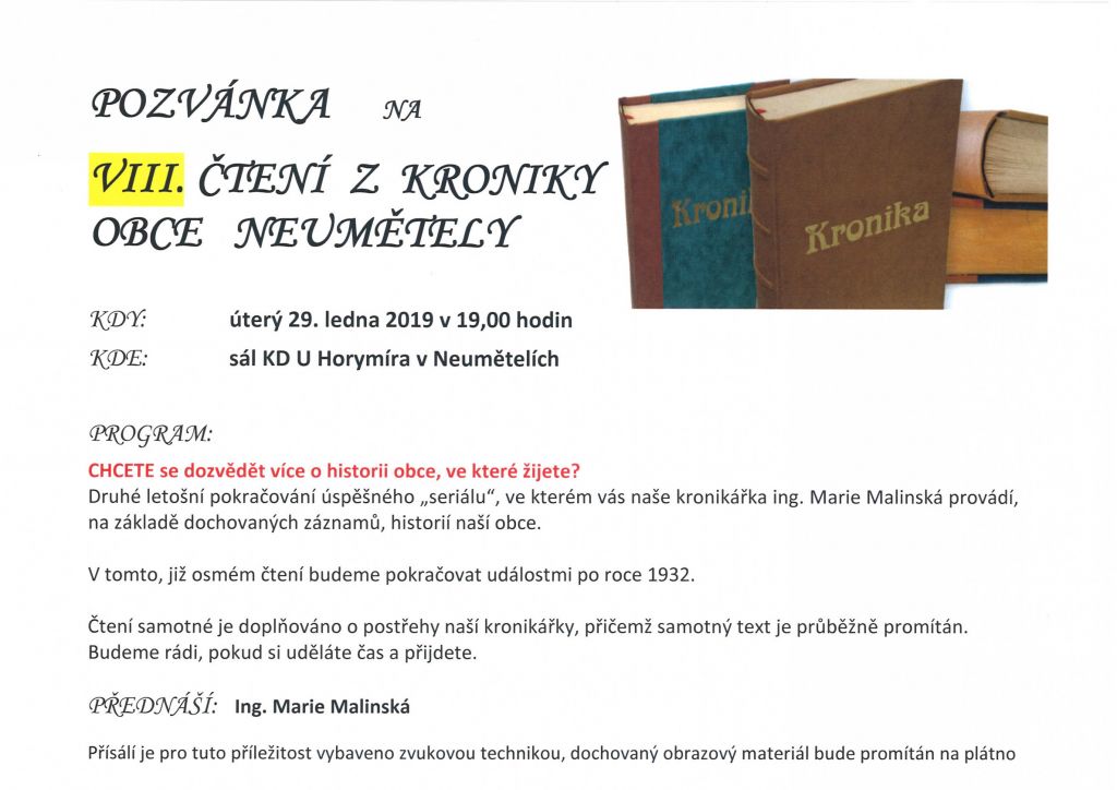 již osmé čtení z Kroniky obce Neumětely
