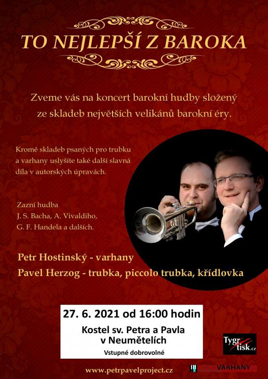 Kulturní výbor OÚ Neumětely vás všechny zve na koncert barokní hudby, který se bude konat v našem kostele sv. Petra a Pavla v neděli 27.6.2021