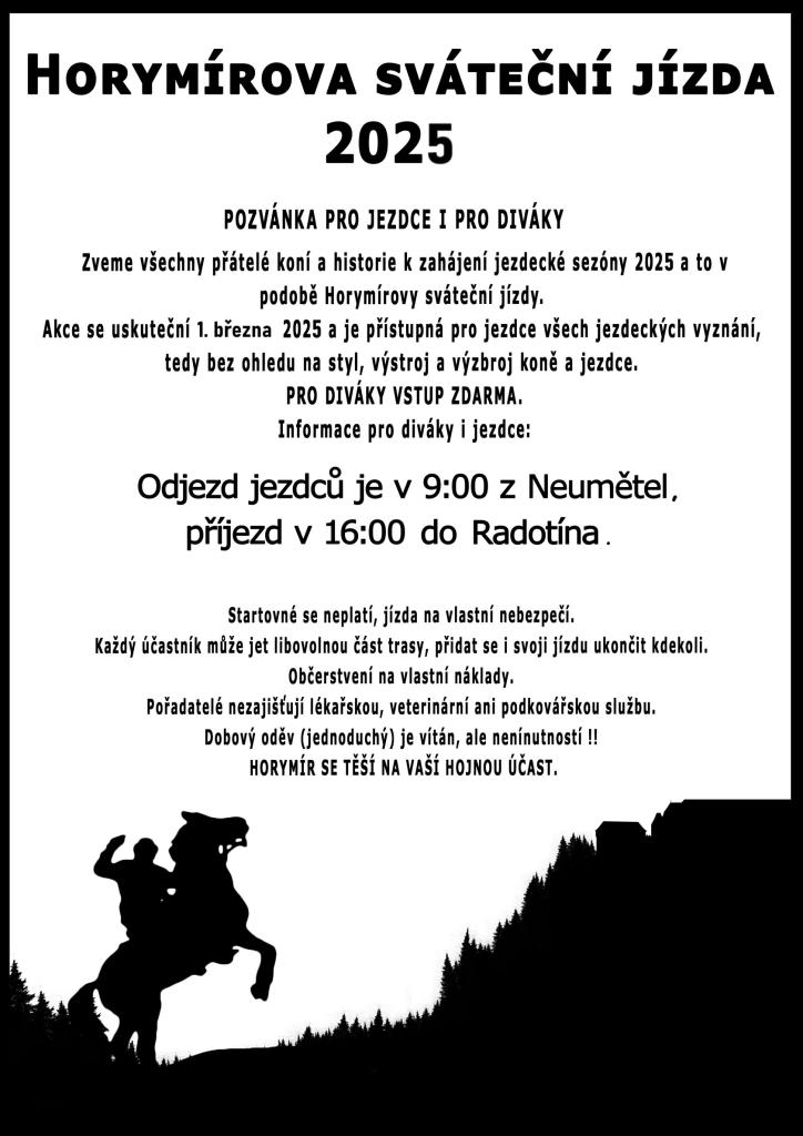 Zveme všechny přátelé koní a historie k zahájení jezdecké sezóny 2025 a to v podobě Horymírovy sváteční jízdy.