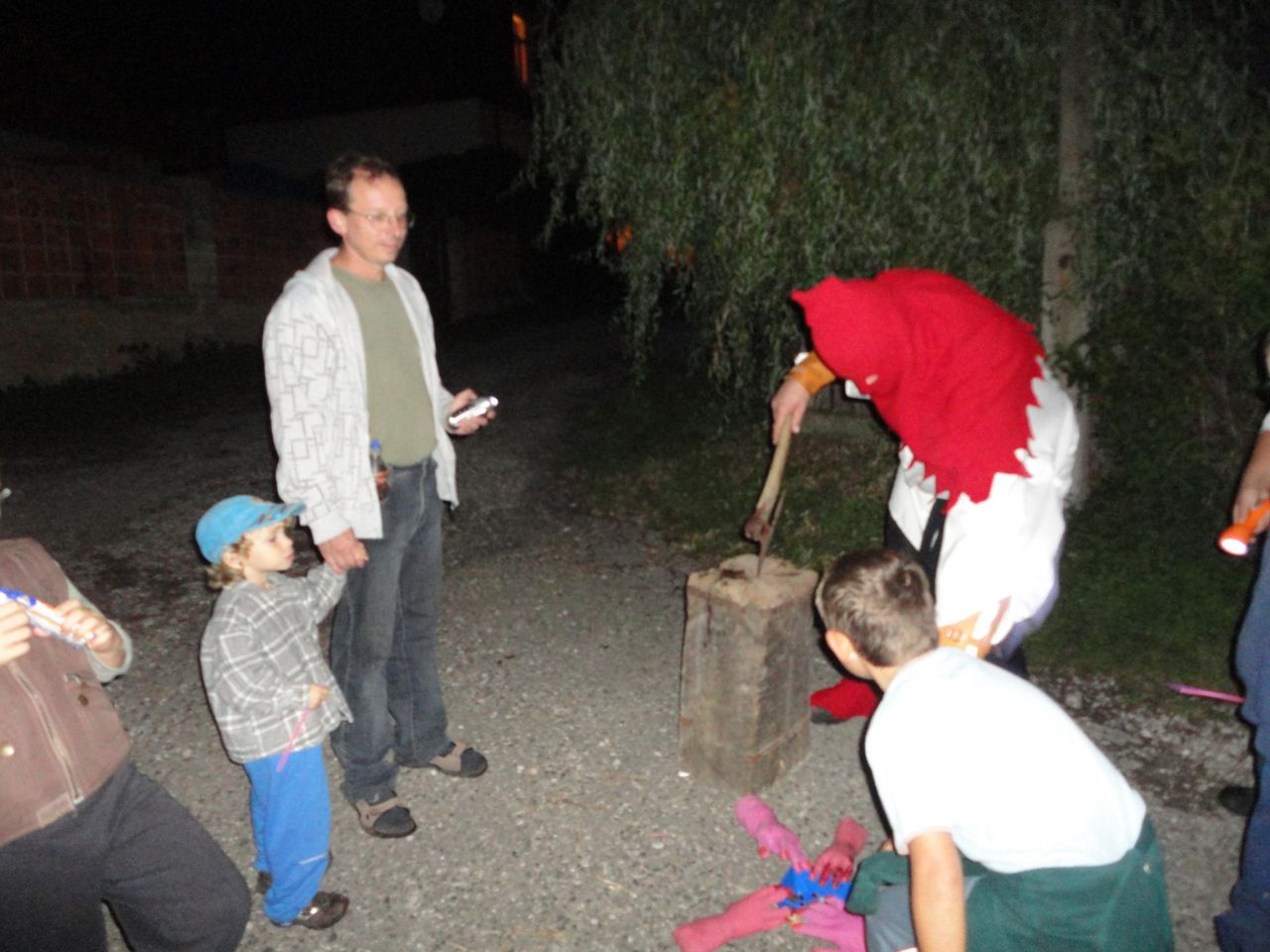 Tmavé prostory Pod Housinou jsme letos vyměnili za Chaloupka. Všichni příchozí se mohli přesvědčit, že i známá místa za naprosté tmy vypadají zcela jinak. Spoře osvětlené obrysy zdí a zákoutí slibovaly zvýšení adrenalinu. A k tomu různá stvoření, krčící se za keříky nebo na nás hýkající zpoza zdí a rohů.