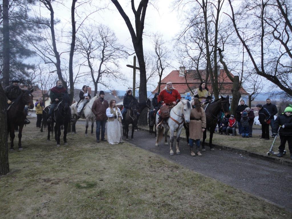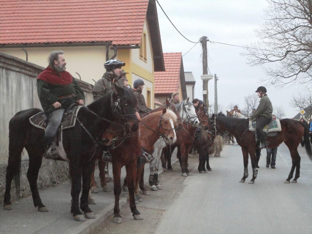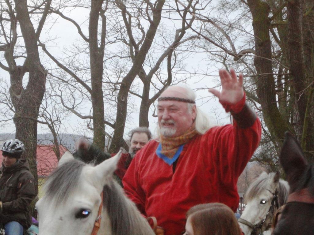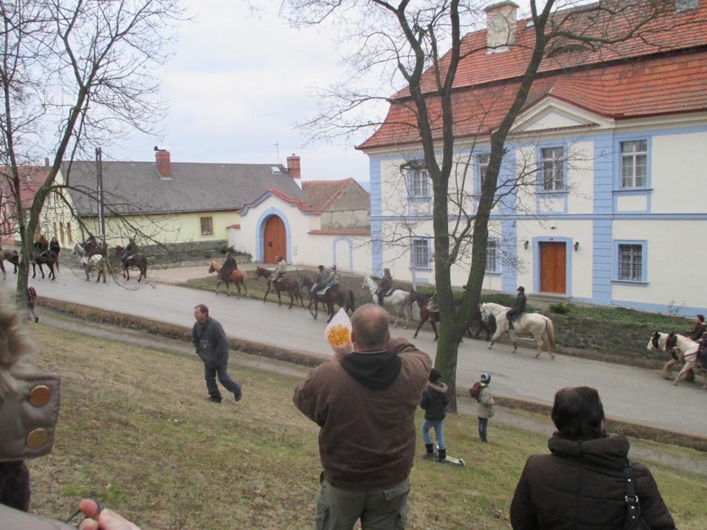 Letos jelo poměrně dost jezdců a tempo se muselo přizpůsobit těm nejpomalejším a nejmenším jezdcům. I proto se dojezd opozdil na 17,00 hodinu, kdy se začaínalo smrákat. Horymír předal starostovi a občanům Neumětel poselství starosty Radotína a popřál všem mnoho zdraví a úspěchů.