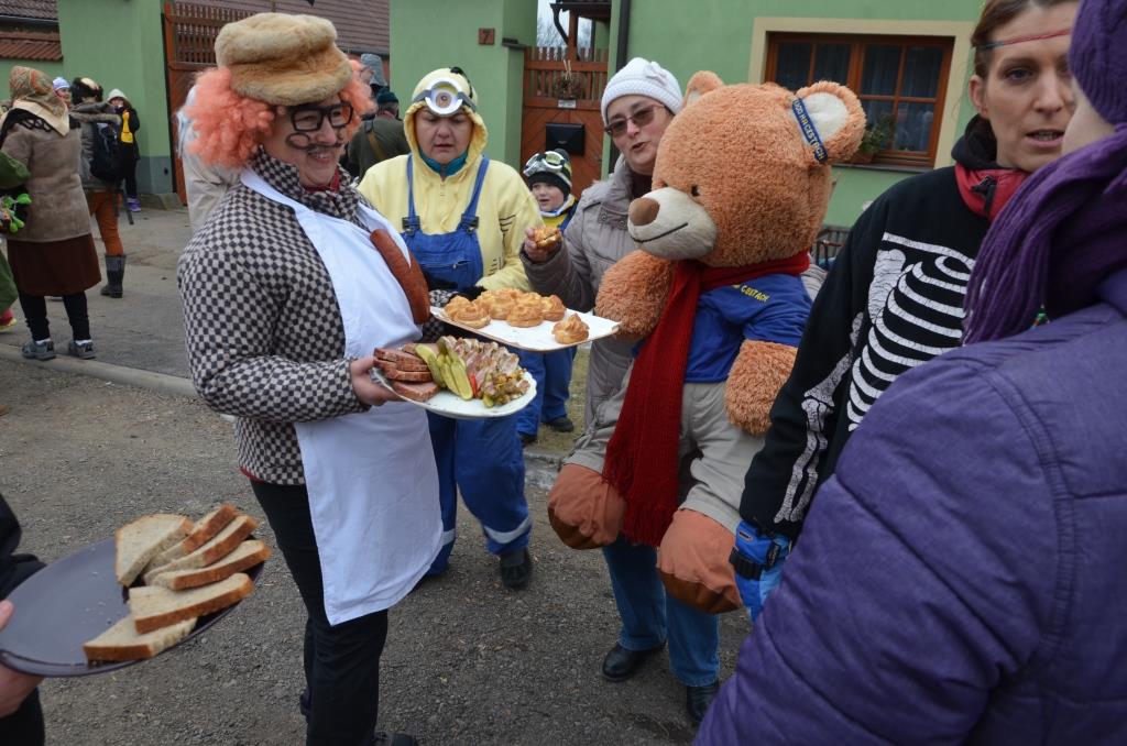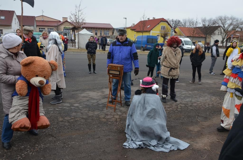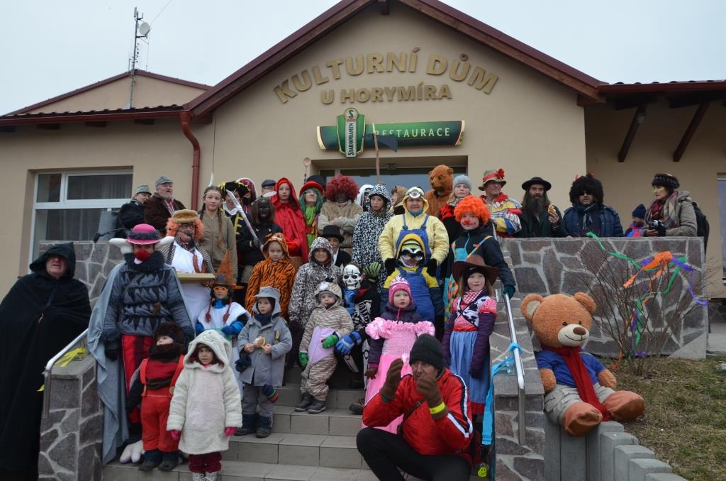 Sraz byl u kulturního domu U Horymíra, kde Laufr obdržel Právo k průchodu obcí, následovala skupinová fotografie a vyhlášení nejlepších masek. Bylo skutečně z čeho vybírat, protože naši občané jsou velice nápadití. Poté již všichni vyrazili na průvod obcí.
