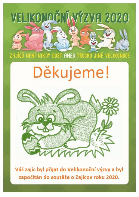 Děkujeme všem, kteří se zapojili do velikonoční výzvy ZAJÍCOV 2020